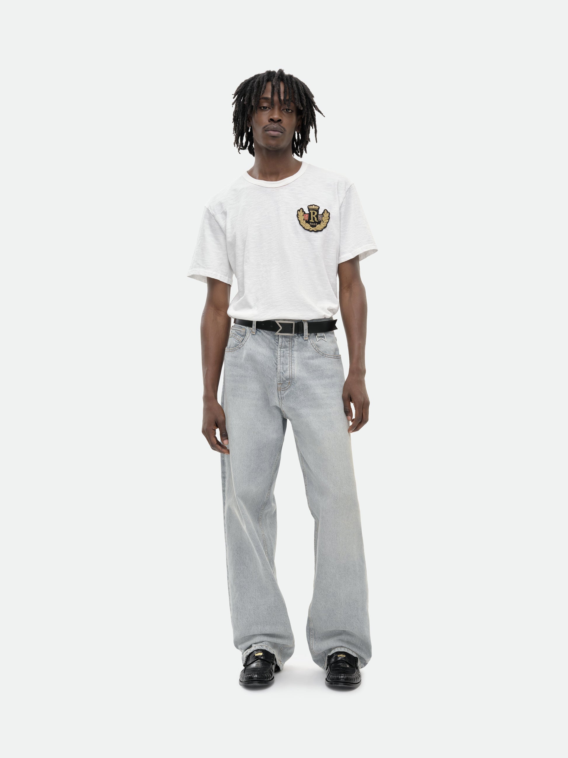 Custom-fit lightweight cotton short sleeve tee-shirt with Rhude crest embroidered on front chest, with a clean back.