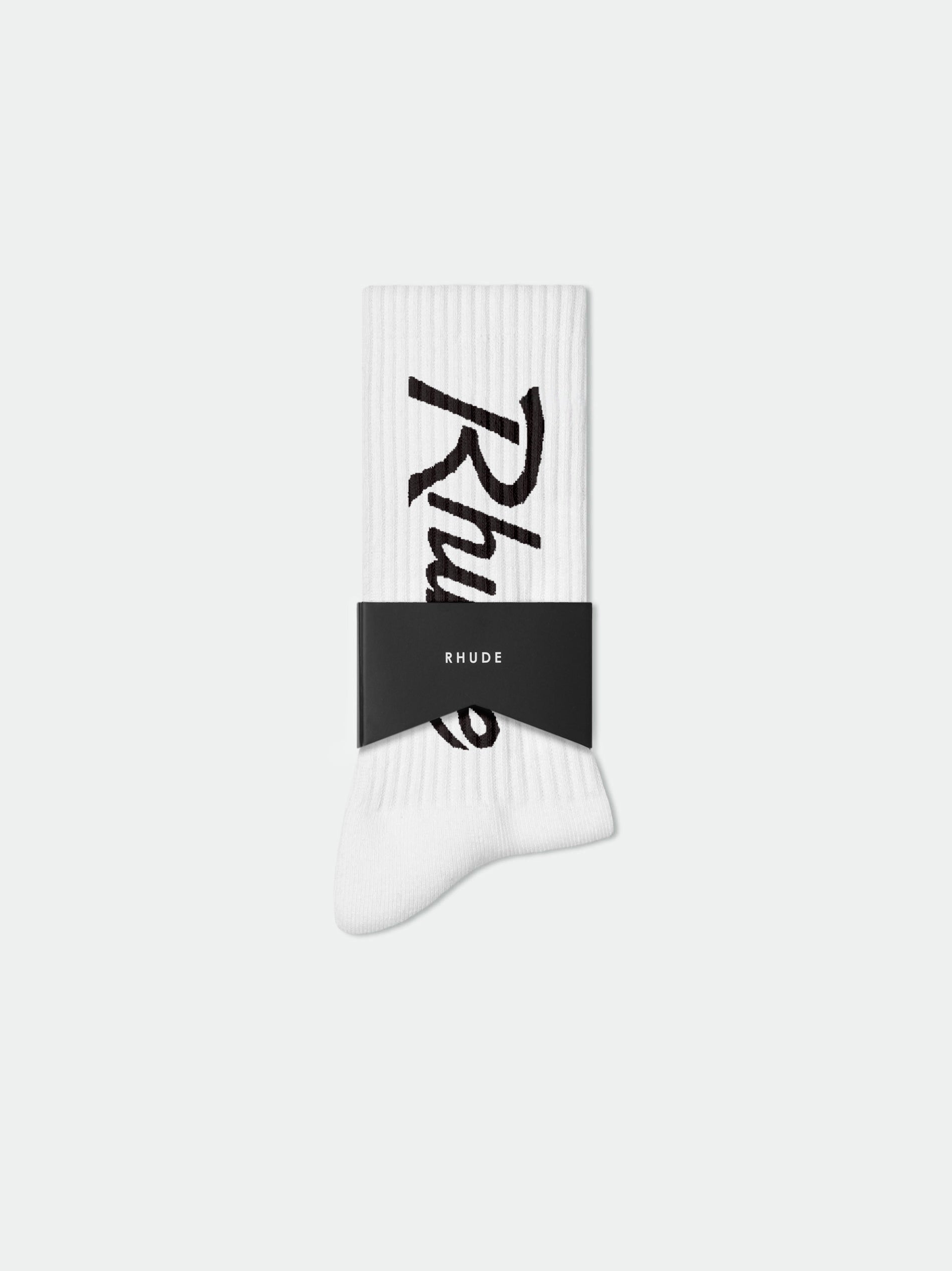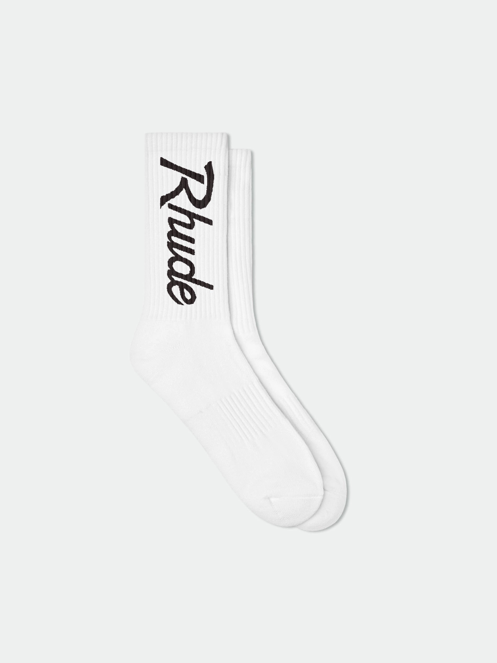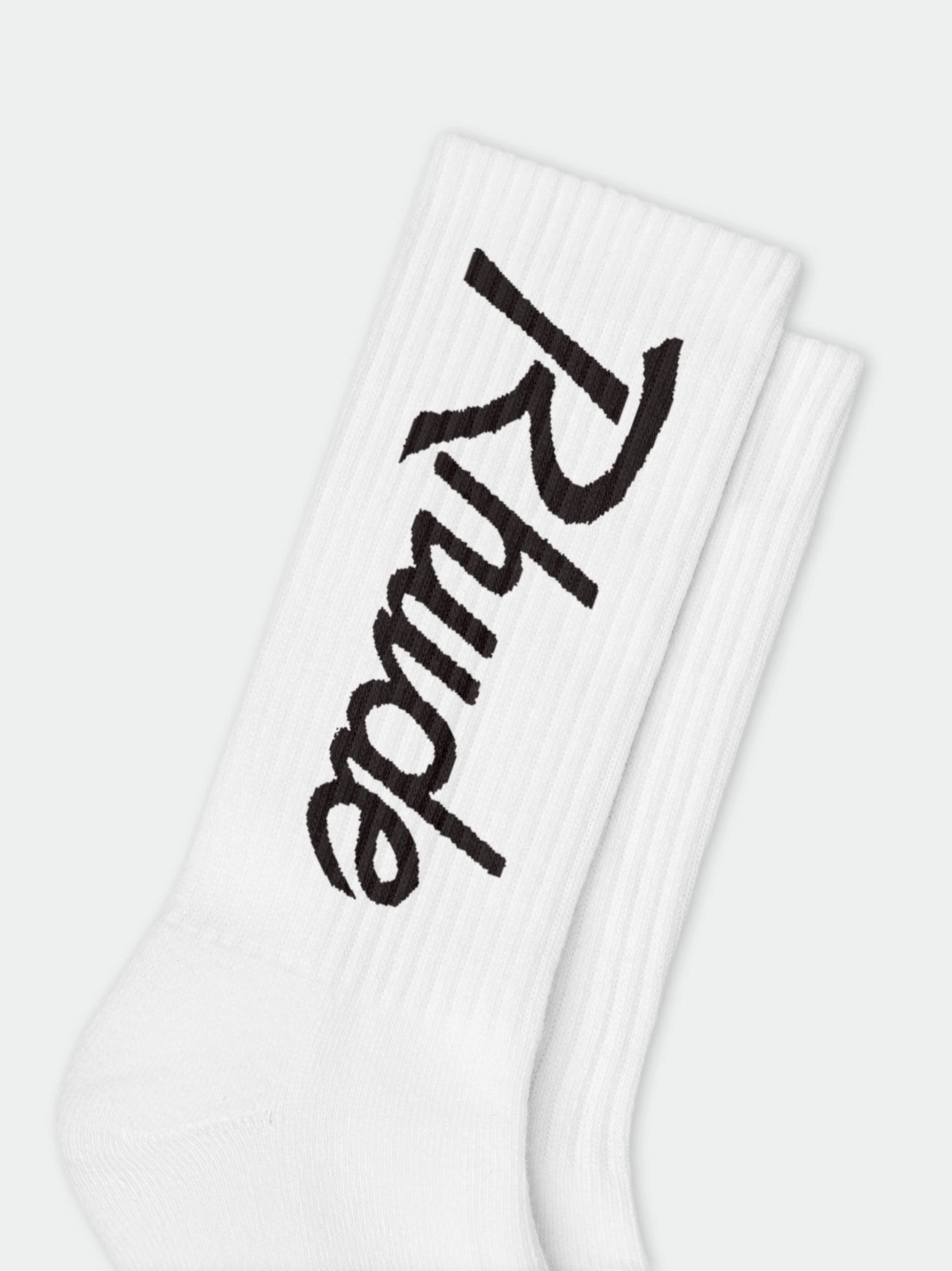 Signature cotton poly sport sock with Rhude logo. Designed for athletics and leisure activities.