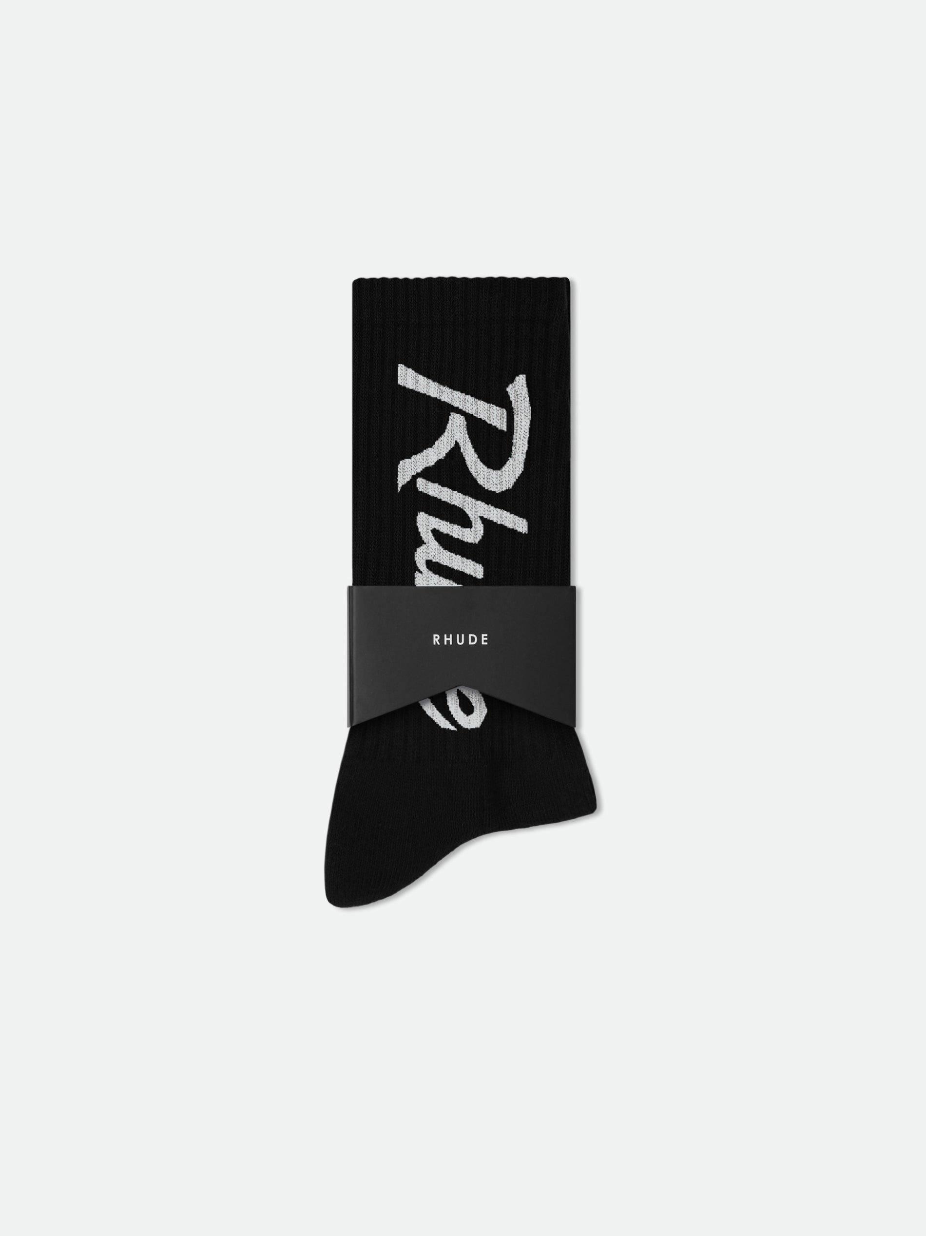 Signature cotton poly sport sock with Rhude logo. Designed for athletics and leisure activities.